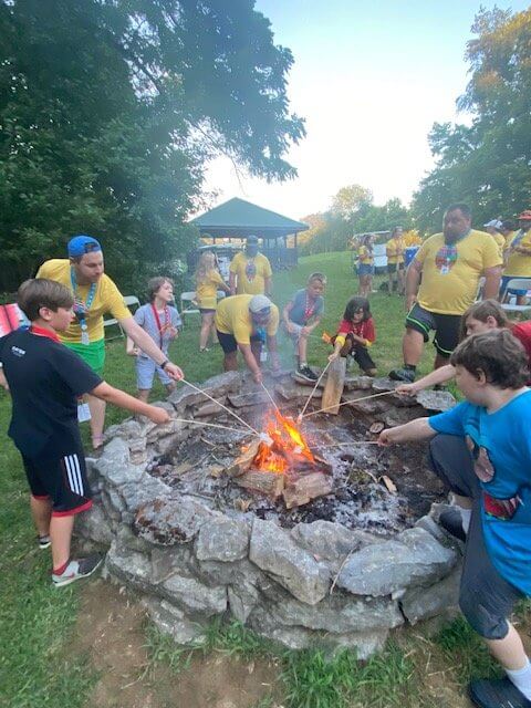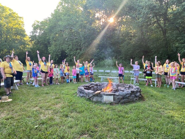 After check-in, everyone got settled in and acquainted with new and old cabin friends. We enjoyed a cheeseburger dinner before heading to opening camp fire; which included lots skits, songs, celebrations, and of course- S’Mores! Campers also all earned a “Courage Coin” for coming to camp.