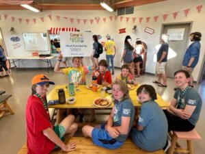 After check-in yesterday, everyone got settled in and acquainted with new and old cabin friends. We enjoyed dinner before heading to the opening campfire; which included lots of skits, songs, celebrations, and of course- S’Mores! We also recognized our new campers (and volunteers) with bravery coins.