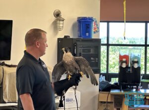 The afternoon was busy with lots of swim time, hiking and exploring the creek, and an awesome visit from Raptor Rehabilitation of Kentucky. We got to meet the coolest red tailed hawk, eastern screech owl, and a Peregrine Falcon and learn all about them.