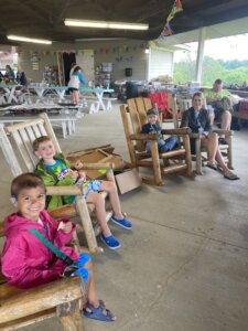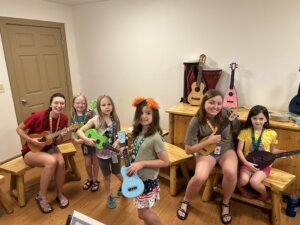 After a restful night’s sleep, we began the morning with Polar Bear Swim before fueling up with breakfast. The morning was filled with campers catching their first fish of the week, music time, and making kites, quilt boards, and ceramic painting in Arts & Crafts!