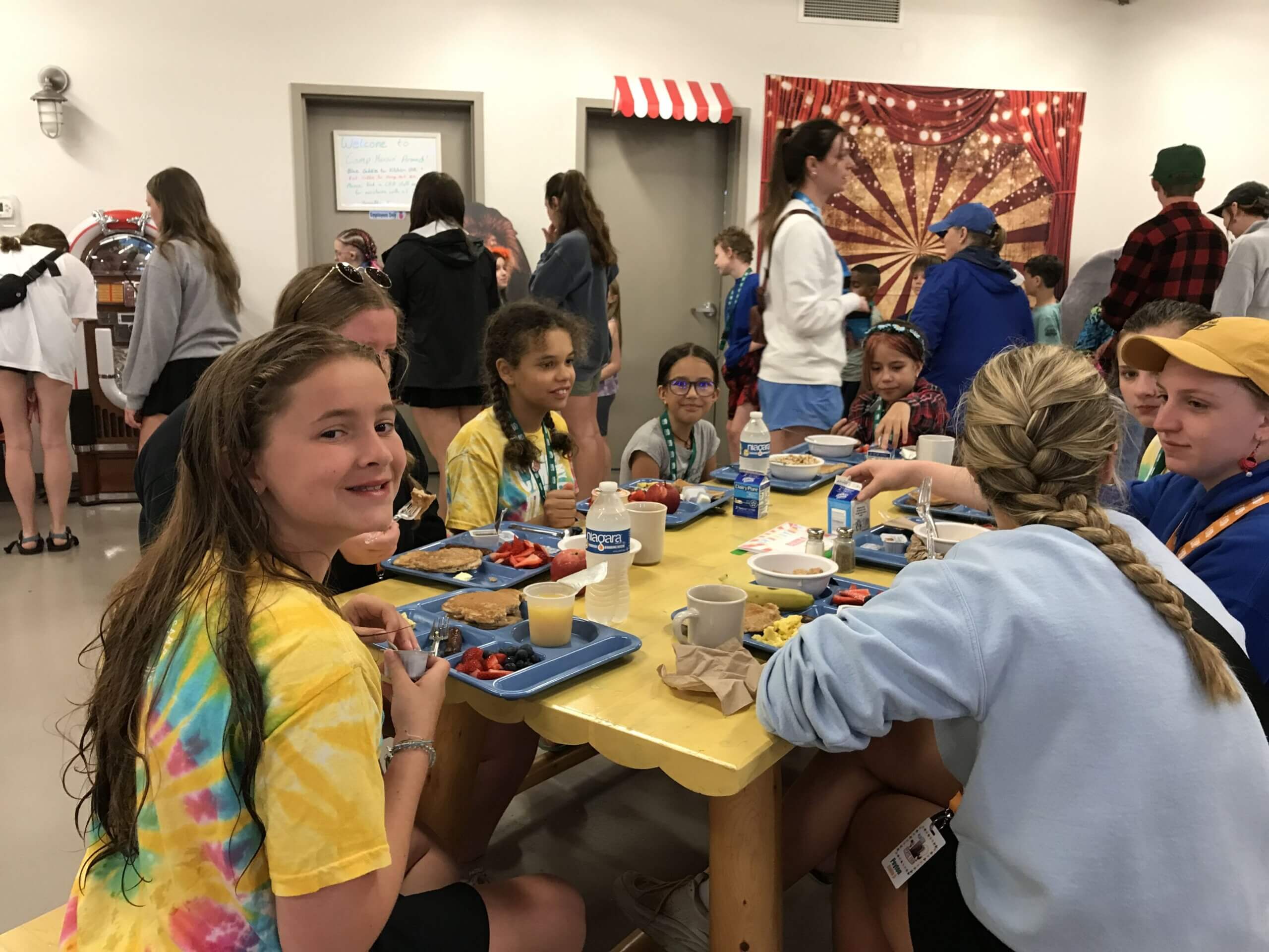 After check-in yesterday, everyone got settled in and acquainted with new and old cabin friends. We enjoyed a pizza dinner before heading to the opening campfire; which included lots of skits, songs, celebrations, and of course- S’Mores!