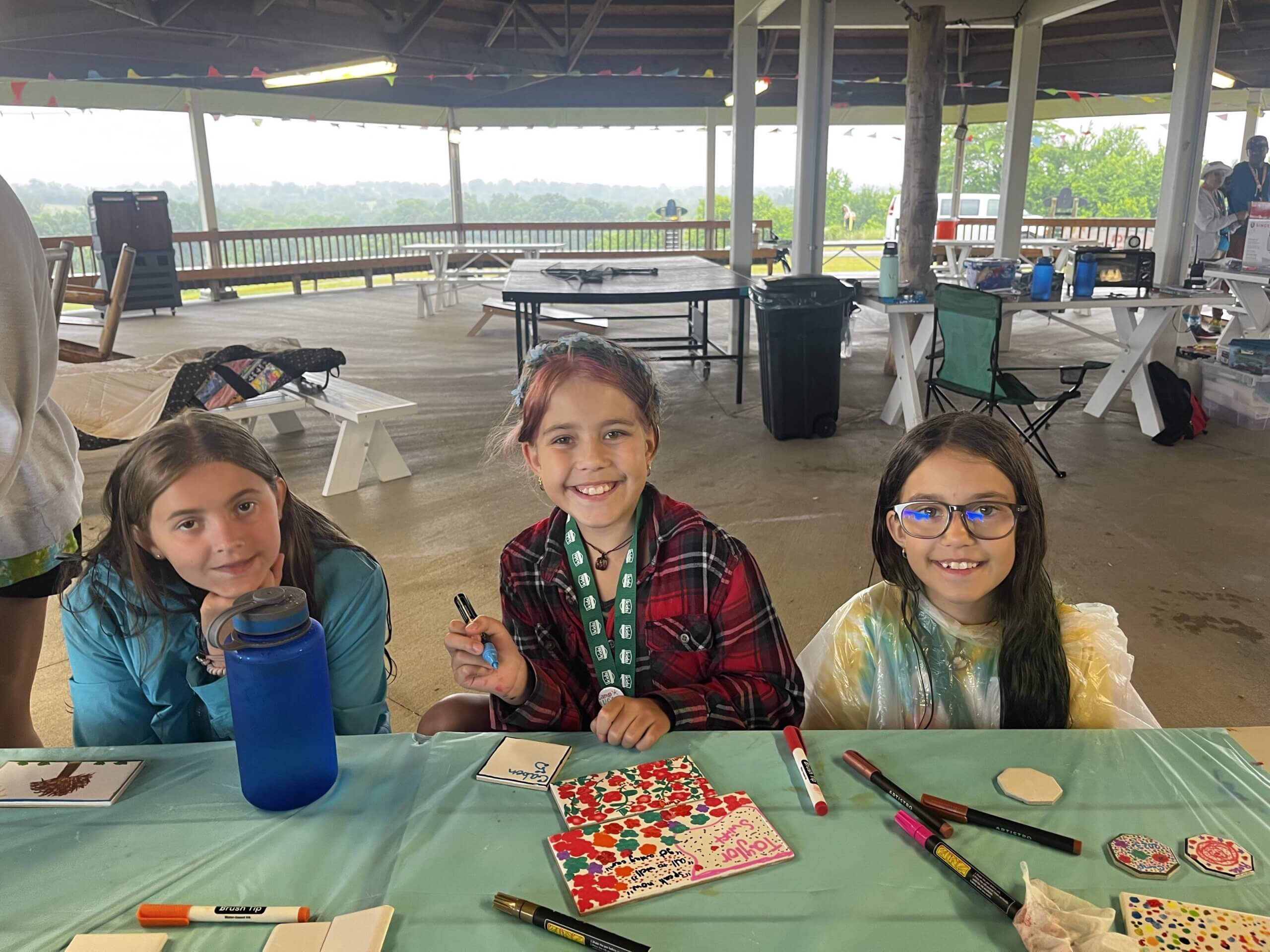 After a restful night’s sleep, we began the morning with Polar Bear Swim before fueling up with breakfast. The morning was filled with campers catching their first fish of the week, music time, and making kites, quilt boards, and ceramic painting in Arts & Crafts!