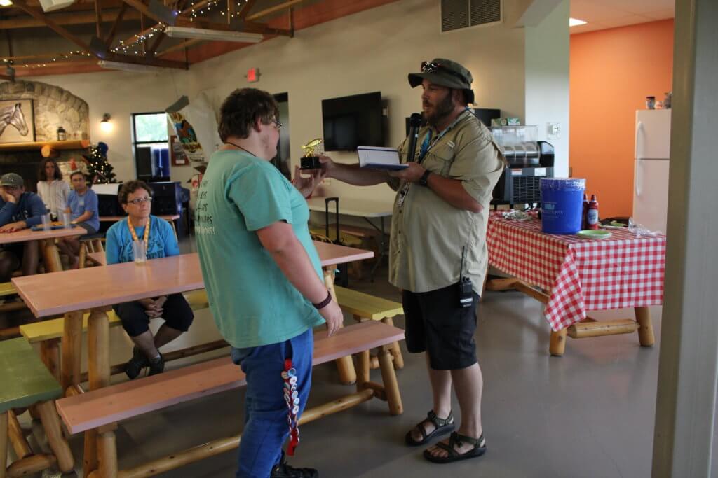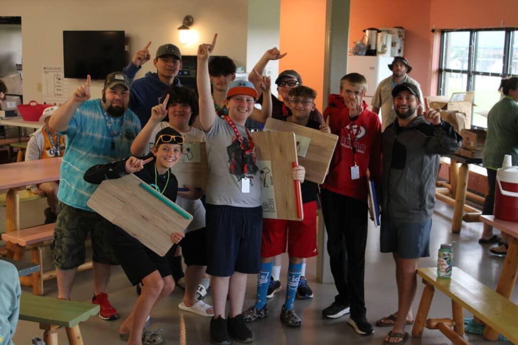 With this slightly overcast day, campers spent their time between the Arts & Crafts Pavilion, fishing in the creek, and putt putt golf. It started raining in the afternoon but our adventurous campers didn’t seem to notice as they took turns cannonballing into the swimming pool and later, tried on dresses in preparation for the Closing Dance.